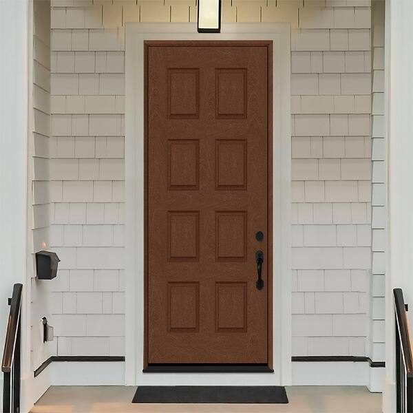 Regency 36 in. x 96 in. 8-Panel LHIS Chestnut Stain Mahogany Fiberglass Prehung Front Door