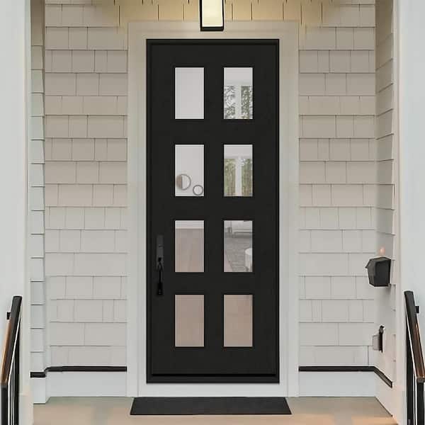 Regency 36 in. x 96 in. 8L Modern Clear Glass RHIS Onyx Stained Fiberglass Prehung Front Door with 4 in. Jamb