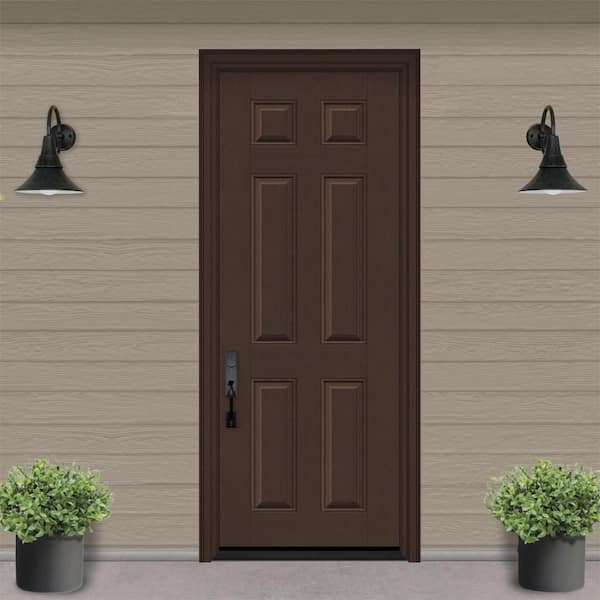 Regency 36 in. x 96 in. Right-Handed 6 Panel Chestnut Stain Mahogany Fiberglass Front Door Slab