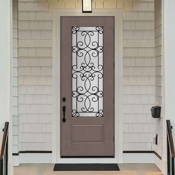 Regency 36 in. x 96 in. Universal Handing 3/4Lite Georgian Decorative Glass Ashwood Mahogany Fiberglass Front Door Slab