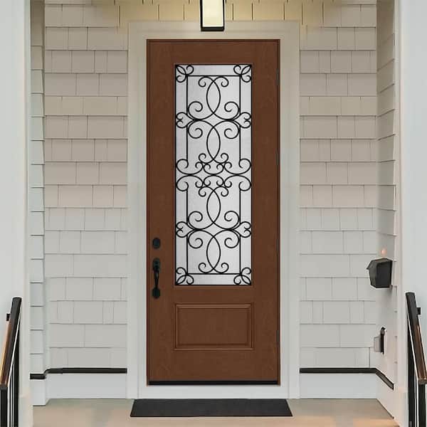 Regency 36 in. x 96 in. Universal Handing 3/4Lite Georgian Decorative Glass Chestnut Mahogany Fiberglass Front Door Slab