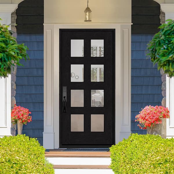 Regency 42 in. x 80 in. 8L Modern Clear Glass RHIS Onyx Stained Fiberglass Prehung Front Door w/4 in. Jamb