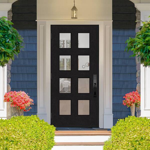 Regency 42 in. x 80 in. 8L Modern Clear Glass RHOS Onyx Stained Fiberglass Prehung Front Door with 6 in. Jamb