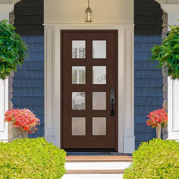 Regency 42 in. x 80 in. Universal Handing 8L Modern Clear Glass Chestnut Stain Fiberglass Front Door Slab