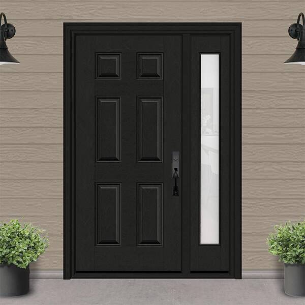 Regency 49 in. x 80 in. 6 Panel LHIS Onyx Stain Mahogany Fiberglass Prehung Front Door w/Clear10in. SL 4-9/16