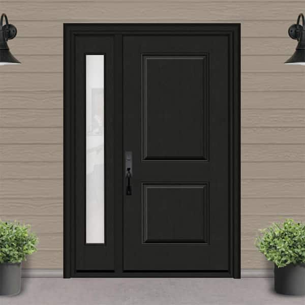 Regency 51 in. x 80 in. 2P Squaretop RHIS Onyx Stain Mahogany Fiberglass Prehung Front Door with Clear 12 in. SL 4-9/16