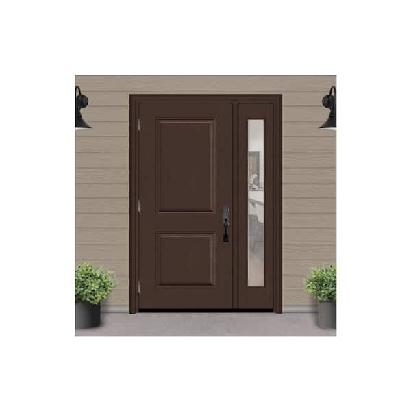 Regency 51 in. x 80 in. 2P Squaretop RHOS Chestnut Stain Mahogany Fiberglass Prehung Front Door w/Clear 12 in. SL 6-9/16