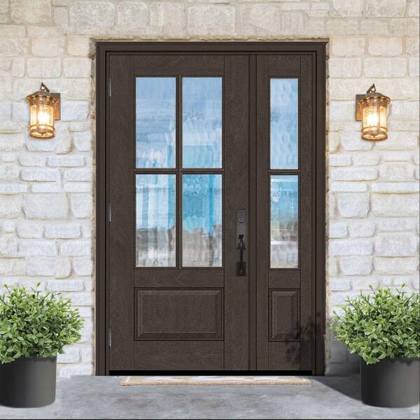 Regency 51 in. x 80 in. 3/4 Lite 4SDL Oasis Deco Glass RHOS Prefinish Hickory Fiberglass Prehung Front Door 1 12 in. SL