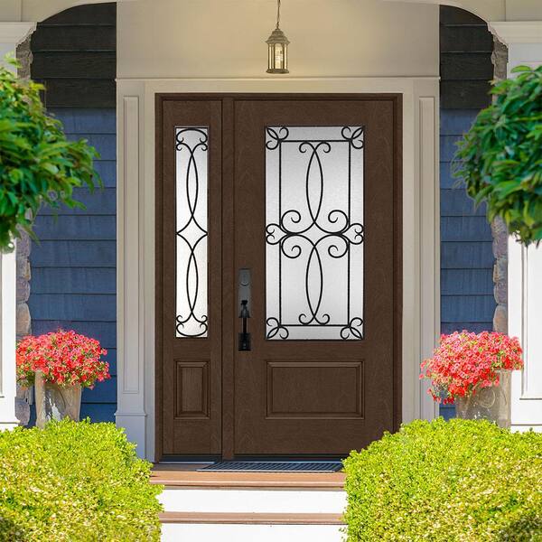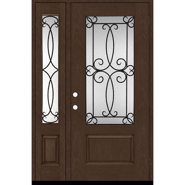 Regency 51 in. x 80 in. 3/4-Lite Georgian Decorative Glass LHOS Hickory Mahogany Fiberglass Prehung Front Door 12 in. SL