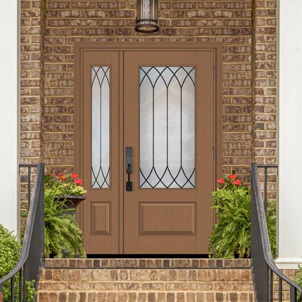 Regency 51 in. x 80 in. 3/4 Lite Spire Decorative Glass LHOS White Unfinished Fiberglass Prehung Front Door 12 in. SL