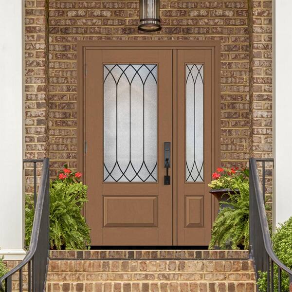 Regency 51 in. x 80 in. 3/4Lite Spire Decorative Glass RHOS Unfinished White Fiberglass Prehung Front Door w/12 in. SL