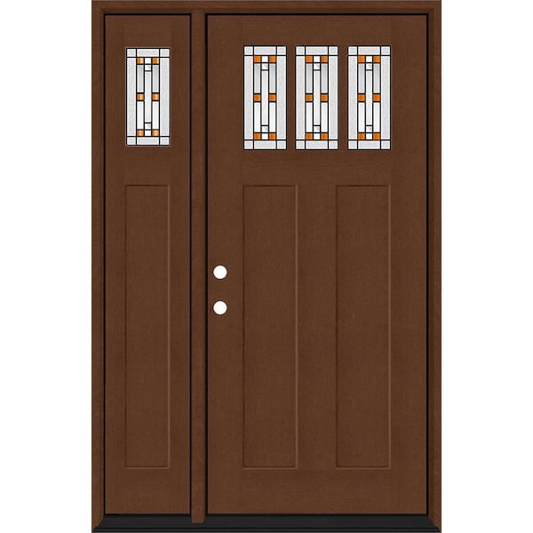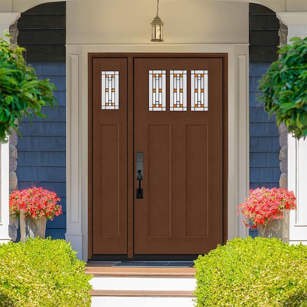 Regency 51 in. x 80 in. 3Lite Amberton Deco Glass RHIS Chestnut Stain Fir Grain Fiberglass Prehung Front Door w/12in.SL