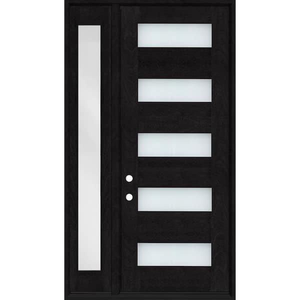 Regency 51 in. x 80 in. 5L Modern Clear Glass RHIS Onyx Stain Mahogany Fiberglass Prehung Front Door w/12 in. SL
