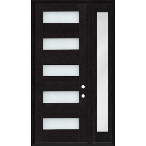 Regency 51 in. x 80 in. 5L Modern Clear Glass RHOS Onyx Stain Mahogany Fiberglass Prehung Front Door w/12 in. SL