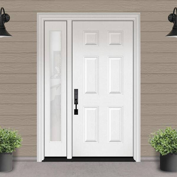 Regency 51 in. x 80 in. 6 Panel RHIS Unfinished White Mahogany Fiberglass Prehung Front Door with Obscure12in. SL 4-9/16