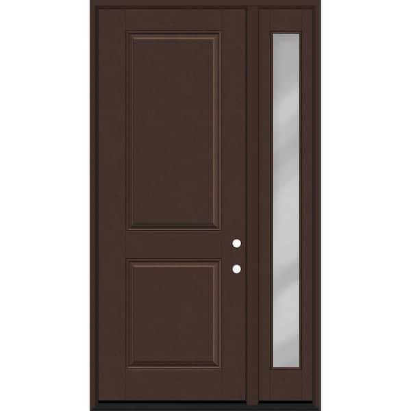 Regency 51 in. x 96 in. 2P Squaretop LHIS Chestnut Stain Mahogany Fiberglass Prehung Front Door w/Clear 12 in. SL 6-9/16