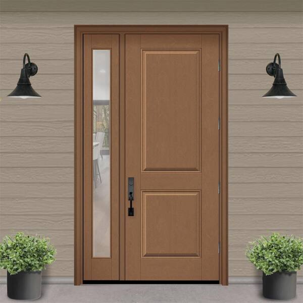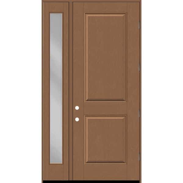 Regency 51 in. x 96 in. 2P Squaretop LHOS AutumnWheat Stain Mahogany Fiberglass Prehung Front Door w/Clear12in.SL 6-9/16