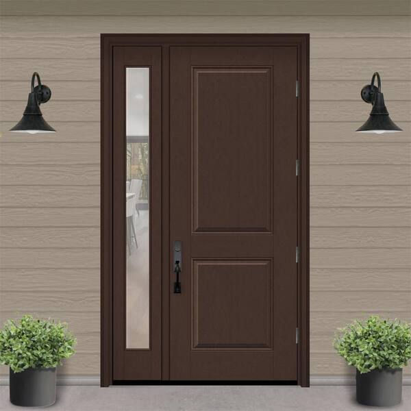 Regency 51 in. x 96 in. 2P Squaretop LHOS Chestnut Stain Mahogany Fiberglass Prehung Front Door w/Clear 12 in. SL 4-9/16