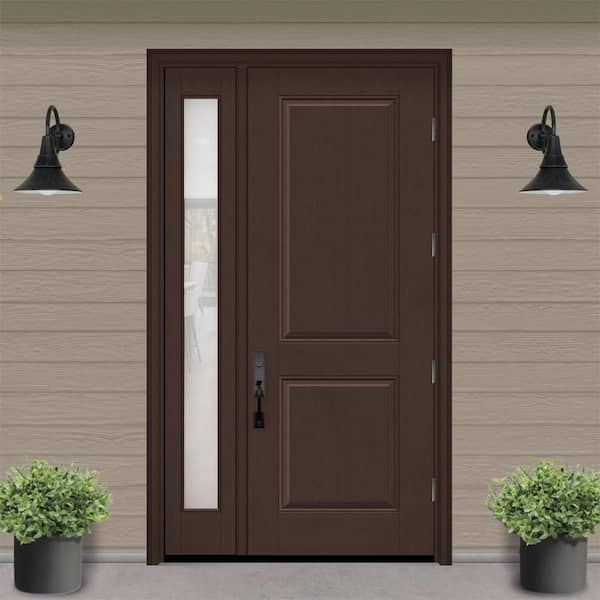 Regency 51 in. x 96 in. 2P Squaretop LHOS Chestnut Stain Mahogany Fiberglass Prehung Front Door w/Obscure12in. SL 6-9/16