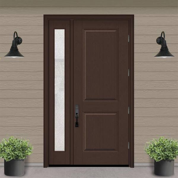 Regency 51 in. x 96 in. 2P Squaretop LHOS Chestnut Stain Mahogany Fiberglass Prehung Front Door with Rain12in. SL 6-9/16