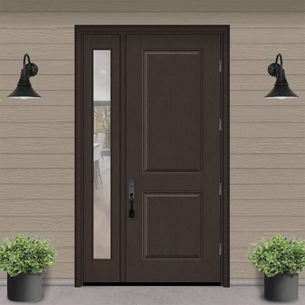 Regency 51 in. x 96 in. 2P Squaretop LHOS Hickory Stain Mahogany Fiberglass Prehung Front Door w/ Clear 12 in. SL 4-9/16