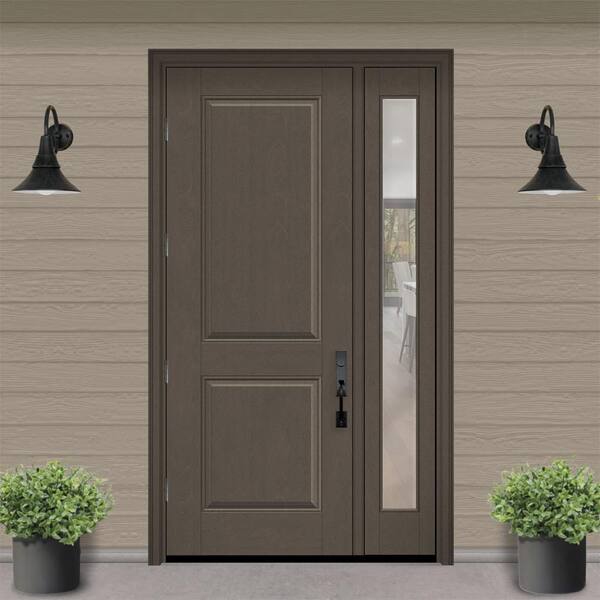 Regency 51 in. x 96 in. 2P Squaretop RHOS Ashwood Stain Mahogany Fiberglass Prehung Front Door w/ Clear 12 in. SL 4-9/16