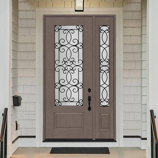 Regency 51 in. x 96 in. 3/4Lite Georgian Decorative Glass RHOS Ashwood Mahogany Fiberglass Prehung Front Door w/12 in.SL