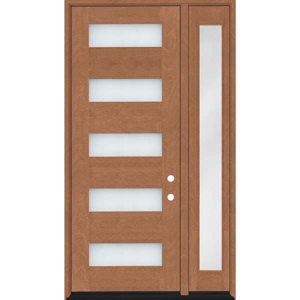 Regency 51 in. x 96 in. 5L Modern Frosted Glass LH AutumnWheat Stain Mahogany Fiberglass Prehung Front Door w/12in.SL