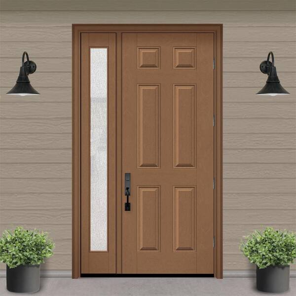 Regency 51 in. x 96 in. 6 Panel LHOS Autumn Wheat Stain Mahogany Fiberglass Prehung Front Door w/Rain 12 in. SL 6-9/16