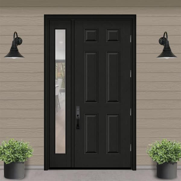 Regency 51 in. x 96 in. 6-Panel LHOS Onyx Stain Mahogany Fiberglass Prehung Front Door w/ Clear 12 in. SL 6-9/16