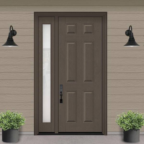 Regency 51 in. x 96 in. 6 Panel RHIS Ashwood Stain Mahogany Fiberglass Prehung Front Door w/Obscure 12 in. SL 6-9/16