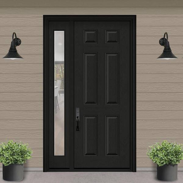 Regency 51 in. x 96 in. 6 Panel RHIS Onyx Stain Mahogany Fiberglass Prehung Front Door w/Clear 12 in. SL 4-9/16