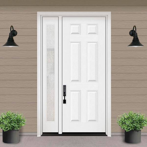 Regency 51 in. x 96 in. 6 Panel RHIS Unfinished White Mahogany Fiberglass Prehung Front Door with Rain 12 in. SL 4-9/16