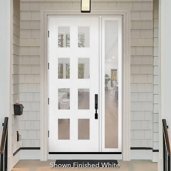 Regency 51 in. x 96 in. 8L Modern Clear Glass RHOS Unfinished Fiberglass Prehung Front Door with Clear 12 in. SL 4-9/16
