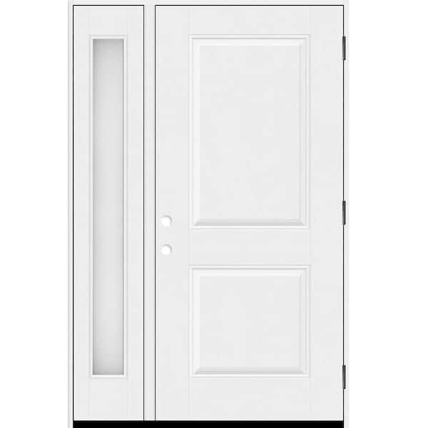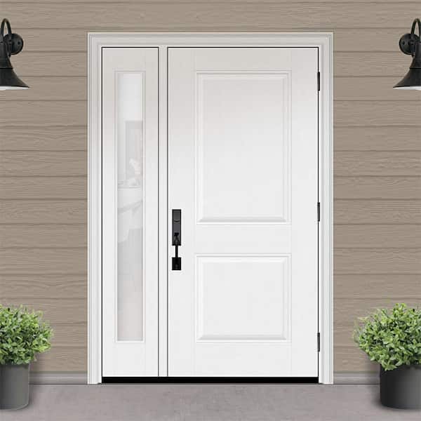 Regency 51 x 80 in. 2P Squaretop LHOS Unfinished White Mahogany Fiberglass Prehung Front Door w/Obscure 12 in. SL 6-9/16