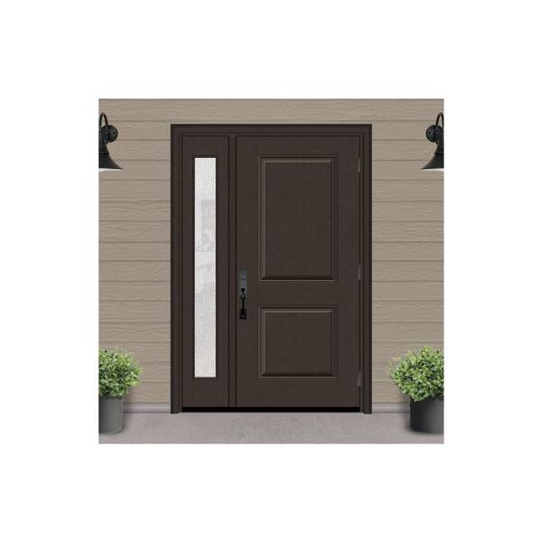 Regency 53 in. x 80 in. 2P Squaretop LHOS Hickory Stain Mahogany Fiberglass Prehung Front Door with Rain14 in. SL 6-9/16
