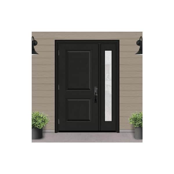 Regency 53 in. x 80 in. 2P Squaretop RHOS Onyx Stain Mahogany Fiberglass Prehung Front Door with Rain 14 in. SL 6-9/16