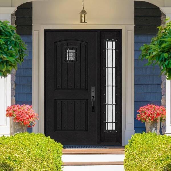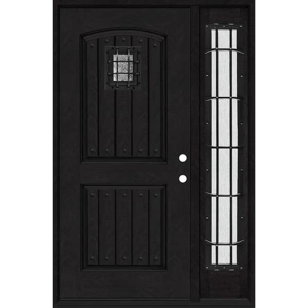 Regency 53 in. x 80 in. 2Panel Plank Cavalier Speakeasy LHIS Onyx Fiberglass Prehung Front Door w/Cavalier 14in.SL