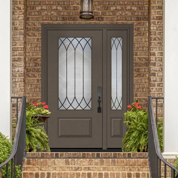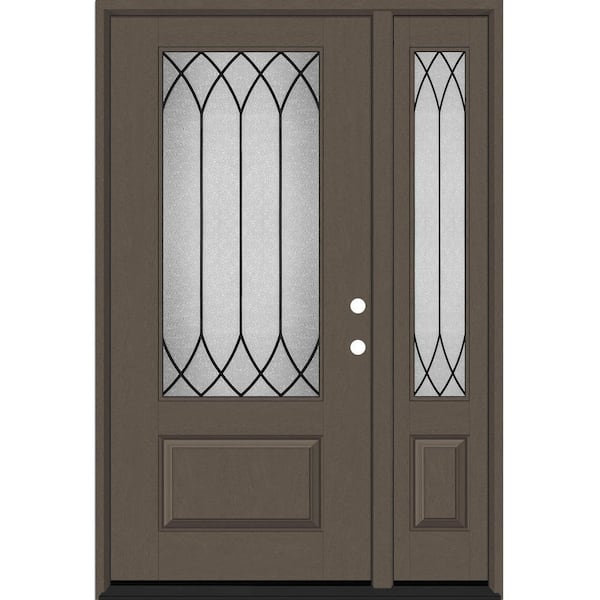 Regency 53 in. x 80 in. 3/4Lite Spire Decorative Glass LHIS Ashwood Mahogany Fiberglass Prehung Front Door w/14in.SL