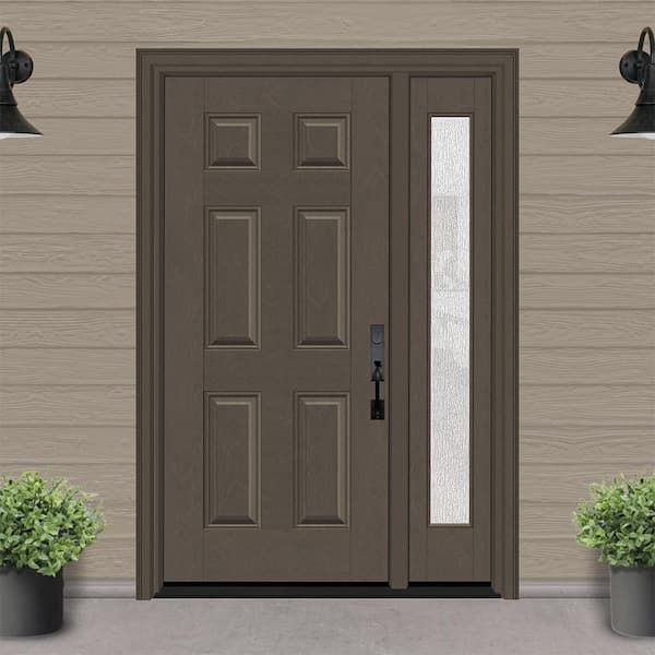 Regency 53 in. x 80 in. 6 Panel LHIS Ashwood Stain Mahogany Fiberglass Prehung Front Door w/Rain14in. SL 4-9/16