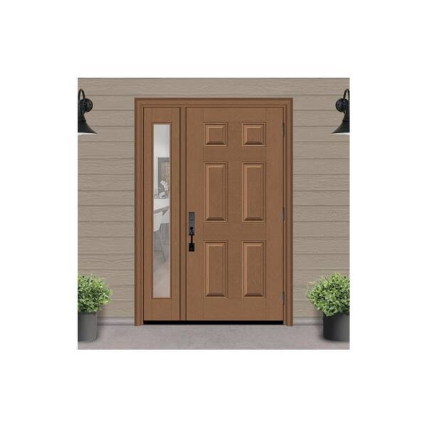 Regency 53 in. x 80 in. 6 Panel LHOS AutumnWheat Stain Mahogany Fiberglass Prehung Front Door with Clear 14in. SL 4-9/16