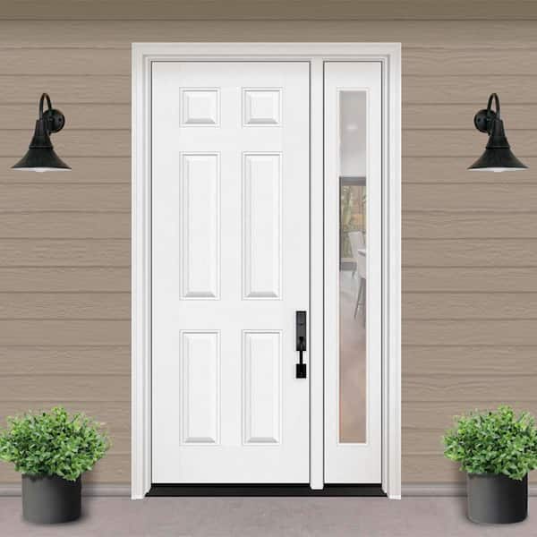 Regency 53 in. x 80 in. 6-Panel RHIS Unfinished White Mahogany Fiberglass Prehung Front Door w/ Clear 14 in. SL 6-9/16