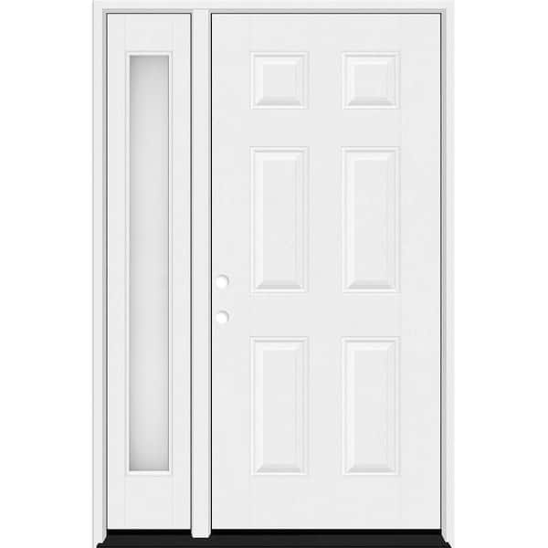 Regency 53 in. x 80 in. 6 Panel RHIS Unfinished White Mahogany Fiberglass Prehung Front Door w/Obscure14in. SL 4-9/16