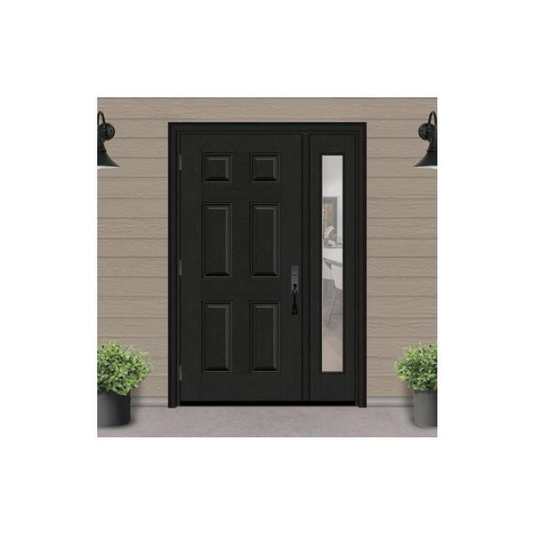Regency 53 in. x 80 in. 6 Panel RHOS Onyx Stain Mahogany Fiberglass Prehung Front Door with Clear 14 in. SL 4-9/16