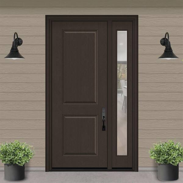 Regency 53 in. x 96 in. 2P Squaretop LHIS Hickory Stain Mahogany Fiberglass Prehung Front Door Clear 14 in. SL 6-9/16