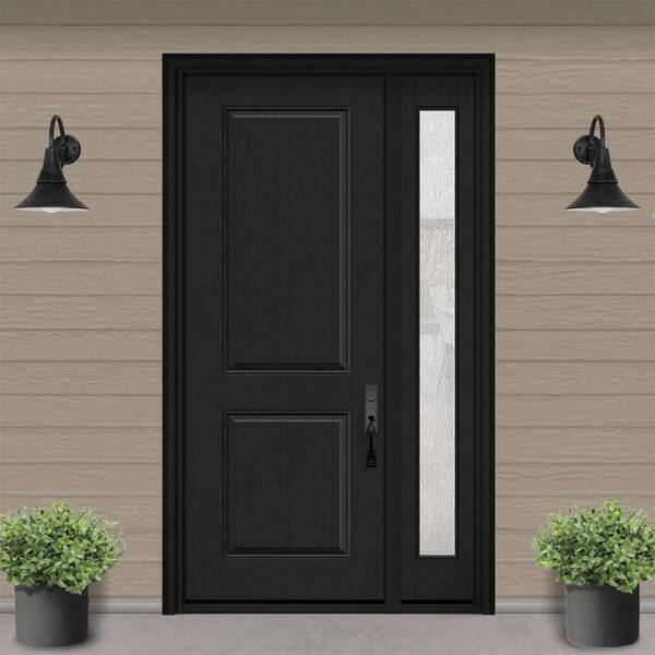 Regency 53 in. x 96 in. 2P Squaretop LHIS Onyx Stain Mahogany Fiberglass Prehung Front Door with Rain 14 in. SL 4-9/16