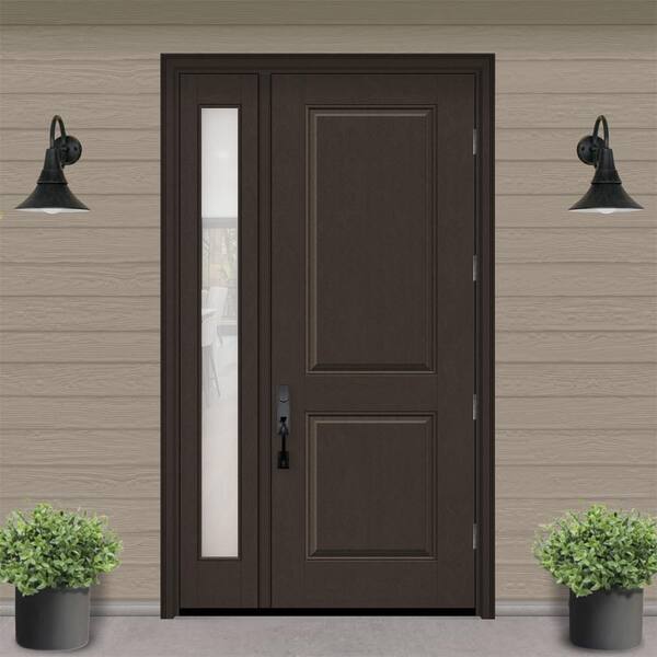 Regency 53 in. x 96 in. 2P Squaretop LHOS Hickory Stain Mahogany Fiberglass Prehung Front Door w/Obscure 14in. SL 4-9/16