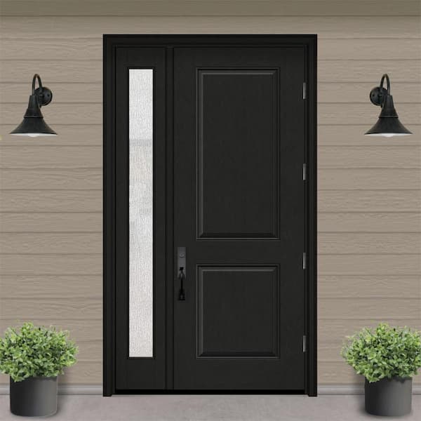 Regency 53 in. x 96 in. 2P Squaretop LHOS Onyx Stain Mahogany Fiberglass Prehung Front Door with Rain 14 in. SL 4-9/16