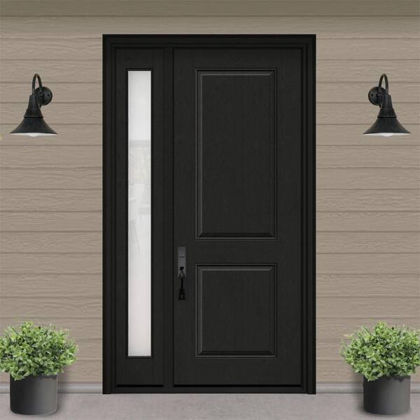 Regency 53 in. x 96 in. 2P Squaretop RHIS Onyx Stain Mahogany Fiberglass Prehung Front Door with Obscure 14in. SL 4-9/16