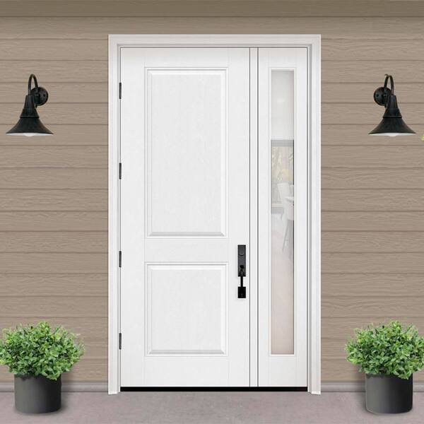 Regency 53 in. x 96 in. 2P Squaretop RHOS Unfinished White Mahogany Fiberglass Prehung Front Door w/Rain 14in. SL 4-9/16